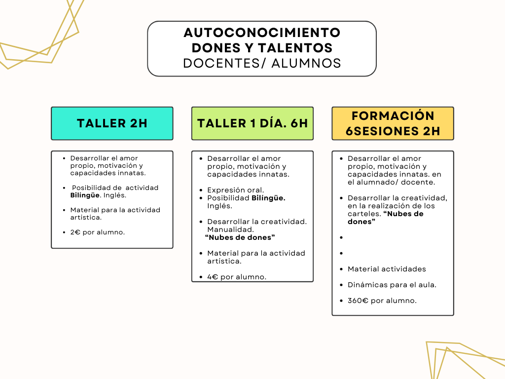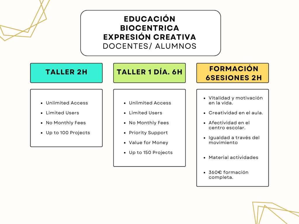 Encontrarás talleres de 2h para iniciar a tu alumnado, de 6 horas para ir profundizando o curso completo de 6 u 8 sesiones.